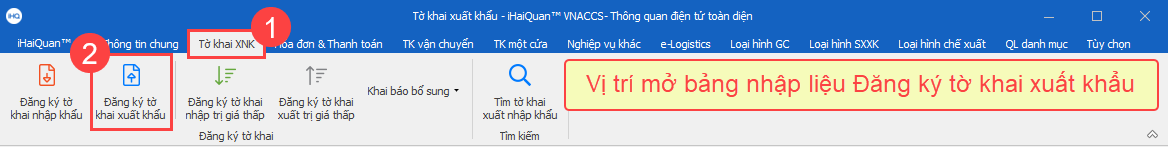 (1) Trên thanh tiêu đề, chọn vào Tờ khai XNK