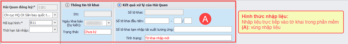 Hình thức nhập liệu: nhập liệu trực tiếp vào giao diện tờ khai trong phần mềm.