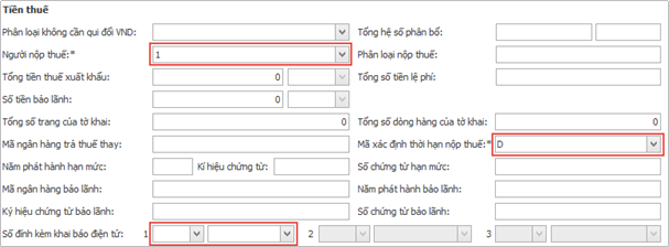 - Mã xác định thời hạn nộp thuế: chọn D – Trường hợp nộp thuế ngay;