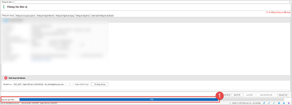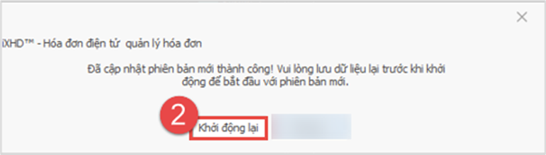- Nếu đang sử dụng iXHD phiên bản cũ, khi khởi động phần mềm, Anh/Chị vui lòng đợi thanh cập nhật chạy đến 100% (1) > sau đó bấm “Khởi động lại” (2)
