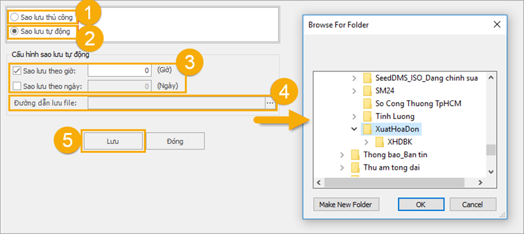 - Sao lưu thủ công: thiết lập tùy chọn này người dùng cần tự thực hiện sao lưu dữ liệu bằng cách sử dụng chức năng Sao lưu dữ liệu trong phần mềm (chi tiết hướng dẫn vui lòng tham khảo tiếp tại phần 2 của nội dung tài liệu này)
