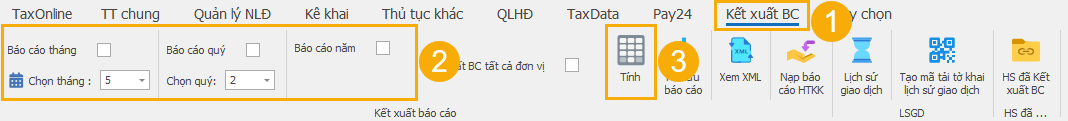 (1) Trên thanh tiêu đề, chọn mục Kết xuất BC.