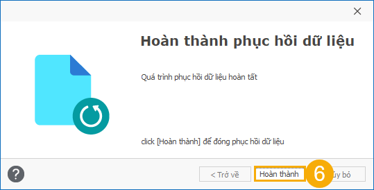 (6) Chờ phần mềm tự động thực hiện, nhấn chọn Hoàn thành sau khi kết thúc quá trình phục hồi.