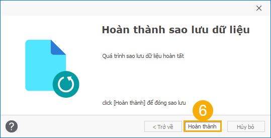 (6) Chờ phần mềm tự động thực hiện, nhấn chọn Hoàn thành sau khi kết thúc quá trình sao lưu.