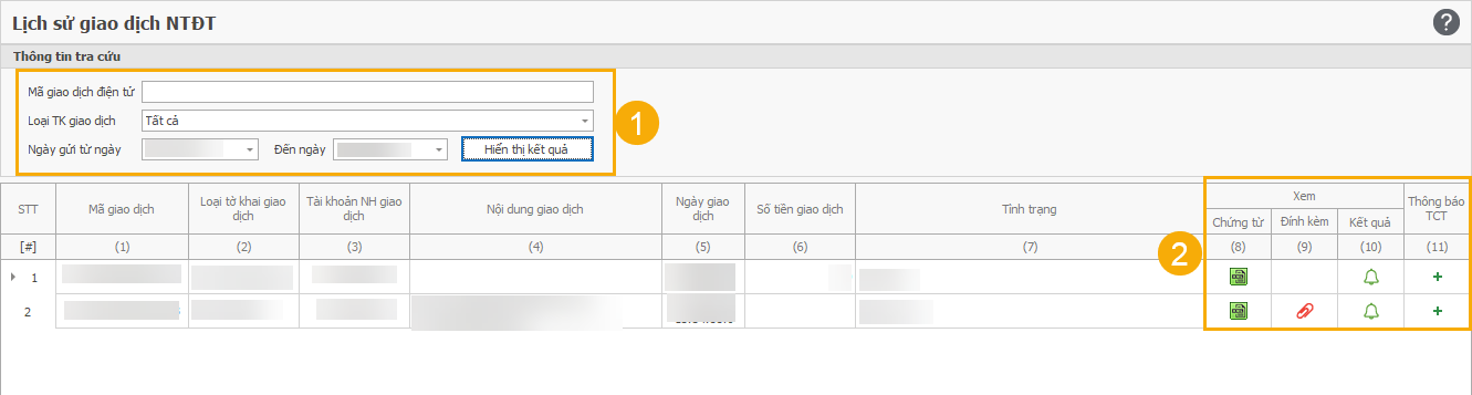 - Nhấn đúp vào biểu tượng để xem lại nội dung chứng từ, file đính kèm hoặc kết quả giao dịch, chờ tình trạng báo Xử lý thành công