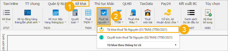 (3) Chọn Tờ khai thuế tài nguyên (01/TAIN) (TT80/2021)