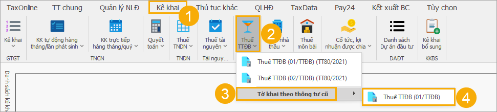 (3) Chọn Tờ khai thuế theo thông tư cũ