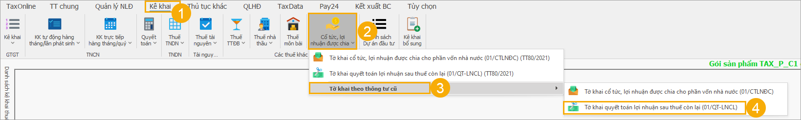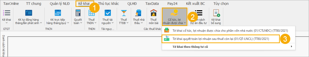 (3) Chọn Tờ khai quyết toán lợi nhuận sau thuế còn lại (01/QT-LNCL) (TT80/2021)