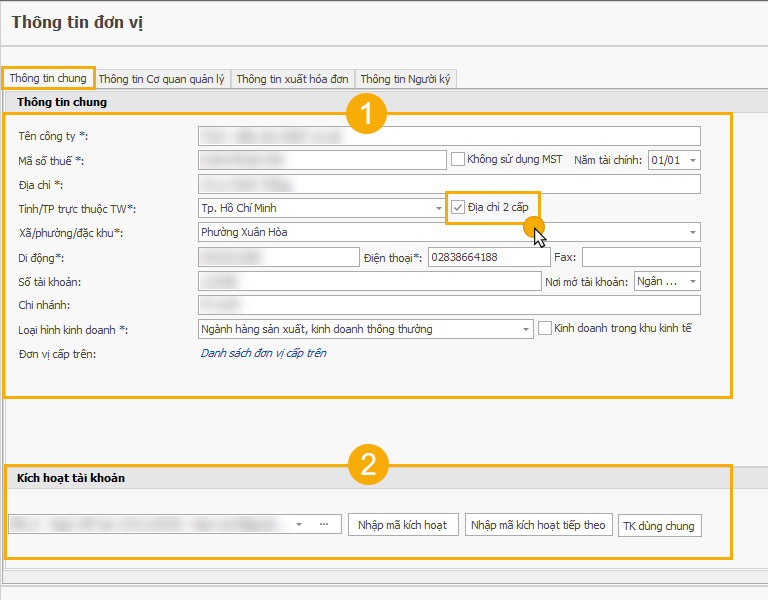 (1) Thông tin chung: hỗ trợ thiết lập thông tin cơ bản của đơn vị; những nội dung này sẽ thể hiện mặc định trên mẫu hồ sơ chính thức, sau khi đã tổng hợp mẫu nhập liệu thành hồ sơ hoàn chỉnh để giao dịch điện tử.