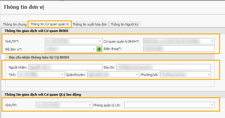 - Địa chỉ nhận thông báo từ CQ BHXH: hỗ trợ thiết lập thông tin về địa chỉ nhận thông báo từ cơ quan BHXH;