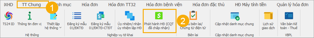 (1) Trên thanh trình đơn chọn vào mục TT chung.