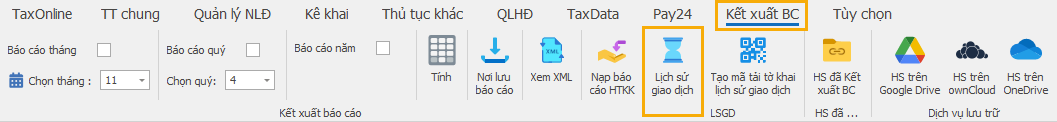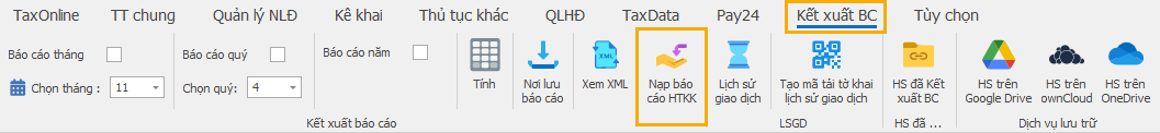 - Trên thanh trình đơn, chọn mục Kết xuất BC.