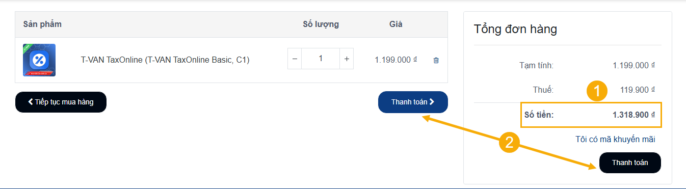 1. Tùy chọn thông tin gói dịch vụ, số lượng;