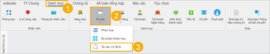 - Bước 3: Chọn Tài sản cố định.