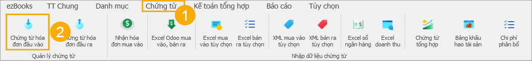 - Bước 2: Chọn Chứng từ hóa đơn đầu vào.