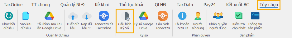 Cấu hình kết nối dịch vụ chữ ký số qua Cloud24 do TS24 cung cấp.