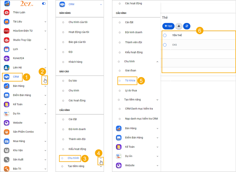 Vị trí tính năng: CRM > Chu trình > Từ khóa