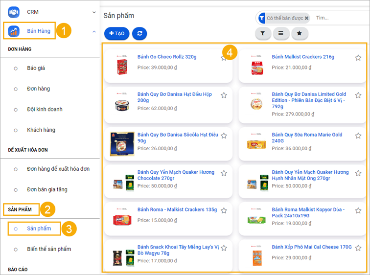 Phân hệ Bán hàng: Bán hàng > Sản phẩm > Sản phẩm