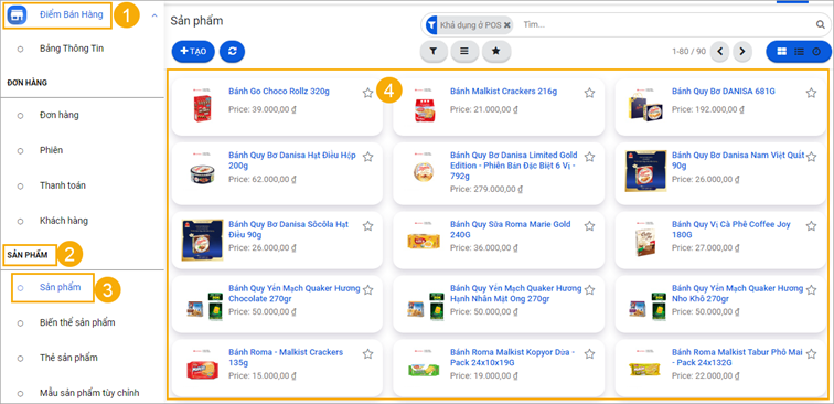 Phân hệ Điểm bán hàng: Điểm bán hàng > Sản phẩm > Sản phẩm