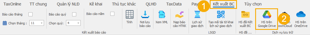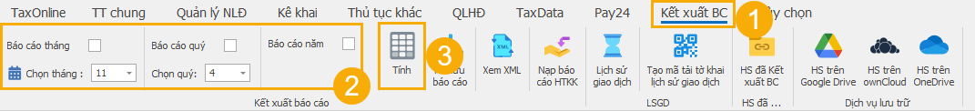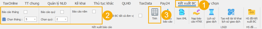 (1) Trên thanh trình đơn, chọn mục Kết xuất BC;
