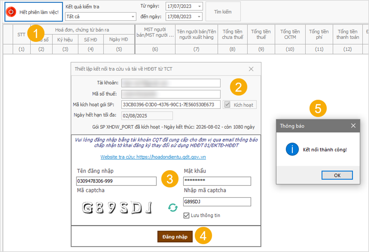 Thiết lập kết nối với tài khoản tra cứu hoá đơn điện tử do cơ quan Thuế đã cấp cho đơn vị