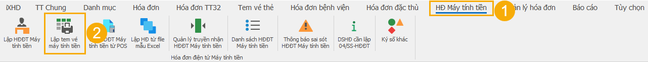 (1) Trên thanh trình đơn, chọn HĐĐT Máy tính tiền