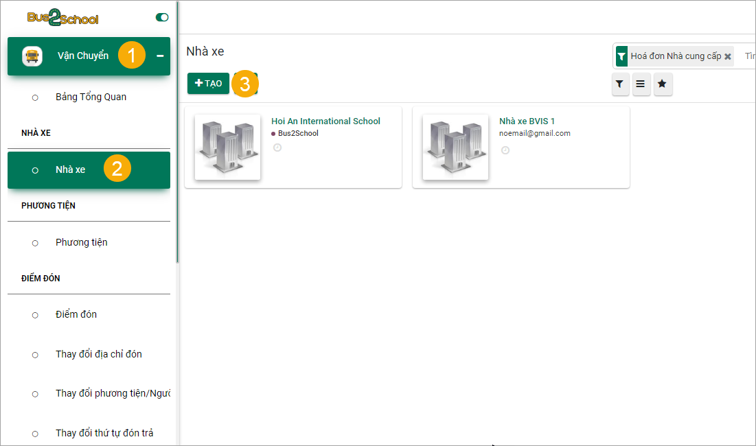 Nội dung bài viết hướng dẫn cách tạo thông tin nhà xe trong hệ thống Bus2School.