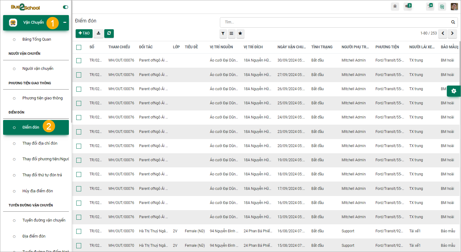 Nội dung bài viết hướng dẫn thực hiện kiểm tra lộ trình đưa đón học sinh trong hệ thống Bus2School.