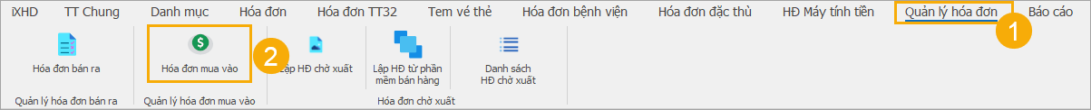 - Bước 2: Chọn chức năng Hóa đơn mua vào.