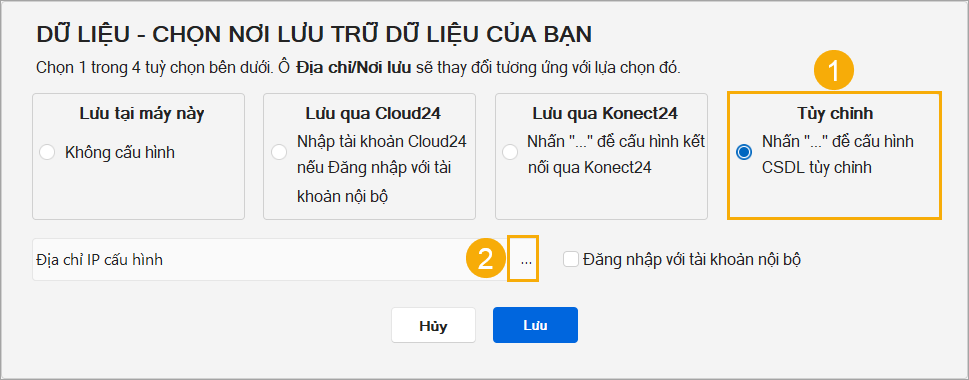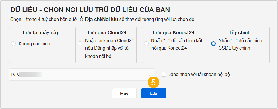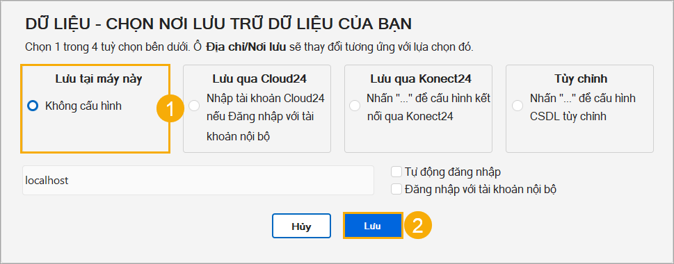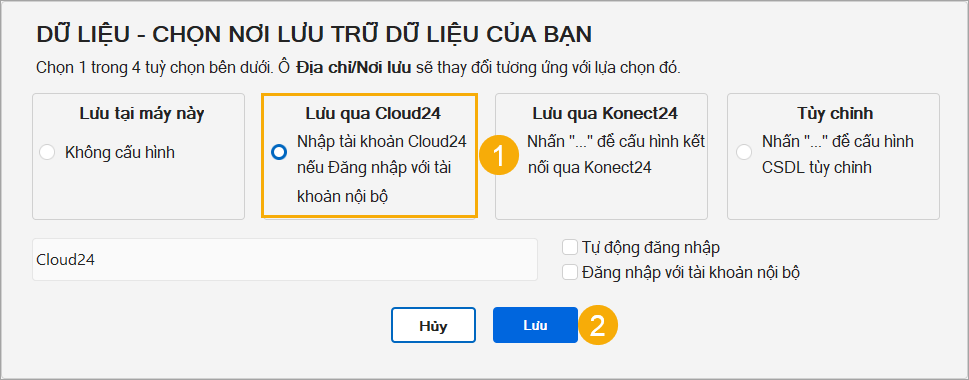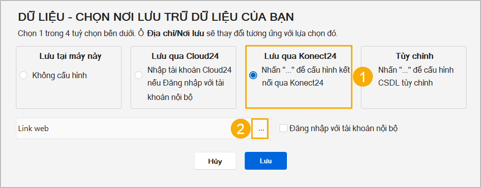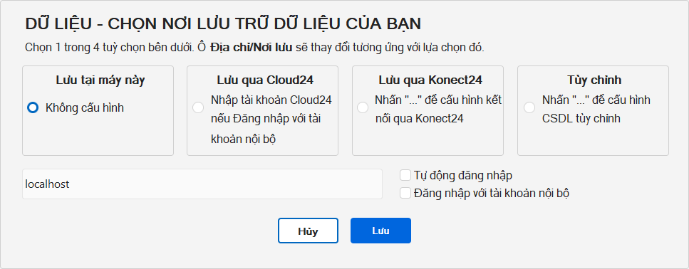 Khi nhấn Lưu dữ liệu, hệ thống hiển thị giao diện Dữ liệu - Chọn nơi lưu trữ dữ liệu của bạn: