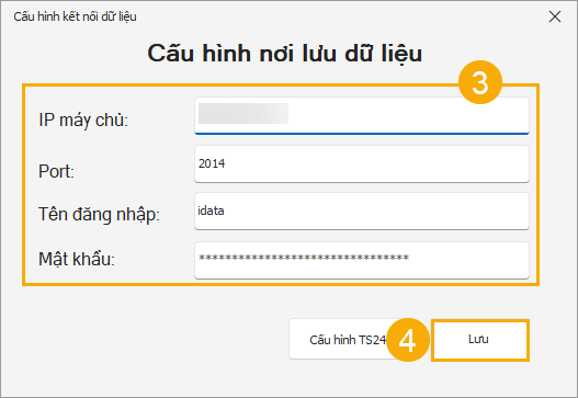 Dữ liệu sẽ lưu trữ qua Cloud24 (Gói sản phẩm Cloud24 do TS24 cung cấp).