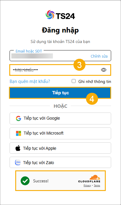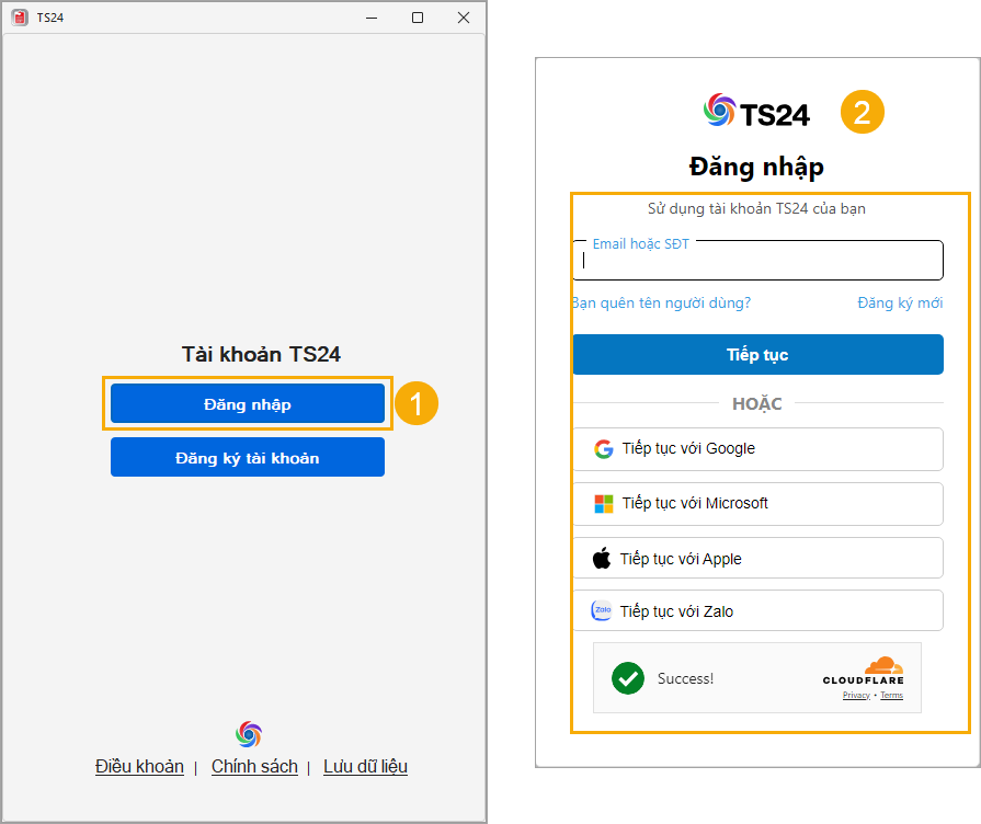 Chức năng đăng nhập này nhằm xác nhận đối tượng được phép truy cập và sử dụng các tài nguyên, chức năng trong từng ứng dụng của TS24.