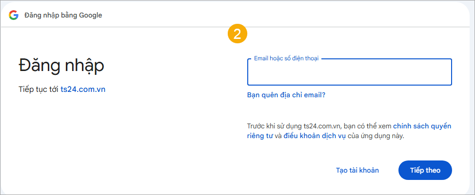 (2) Sau đó đăng nhập với tài khoản của Google.
