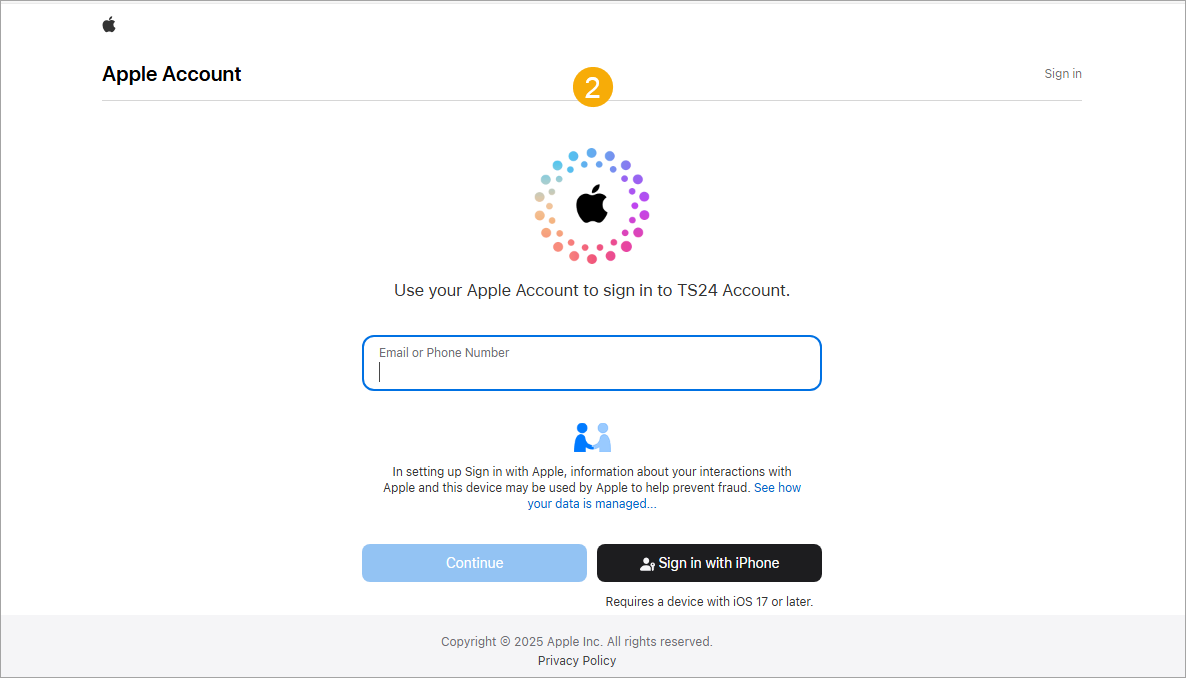 (2) Sau đó đăng nhập với tài khoản của Apple.