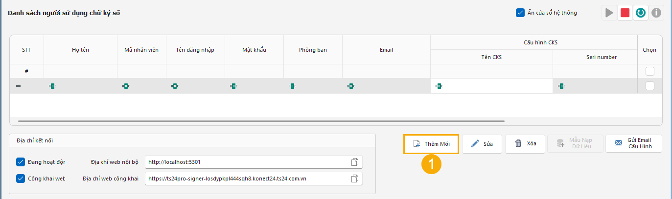 (1) Tại giao diện Danh sách người sử dụng chữ ký số, bấm vào Thêm mới.