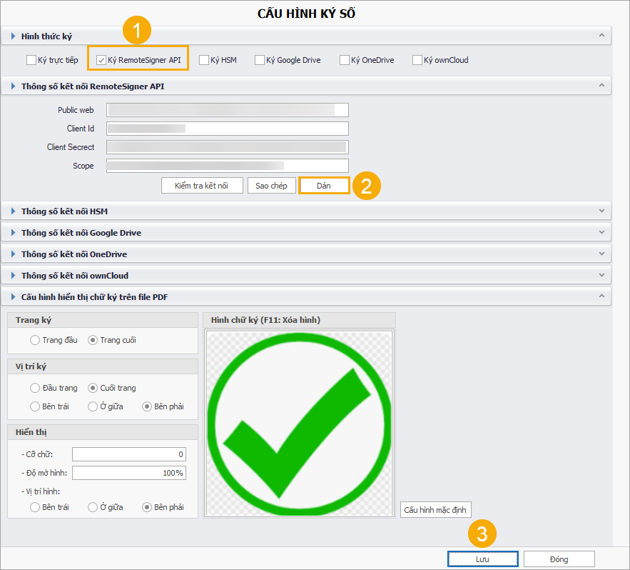(1) Tích chọn hình thức ký Ký RemoteSigner API