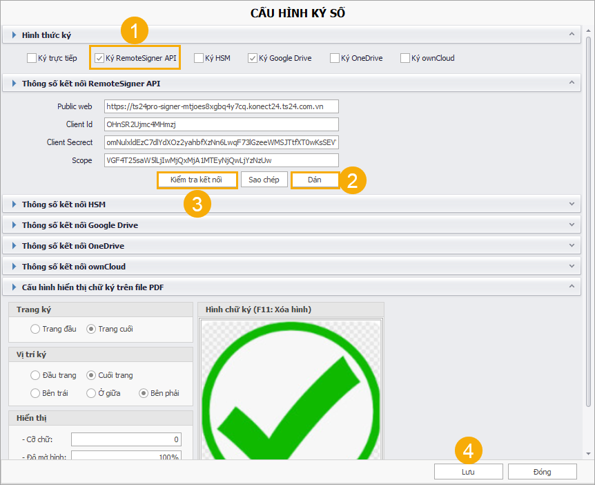 (1) Tích chọn hình thức ký Ký RemoteSigner API