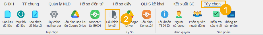 - Cấu hình chữ ký số: Bấm chuột vào tab Cấu hình chữ ký số.