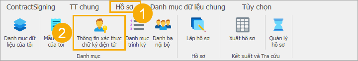 (2) Chọn Thông tin xác thực chữ ký điện tử