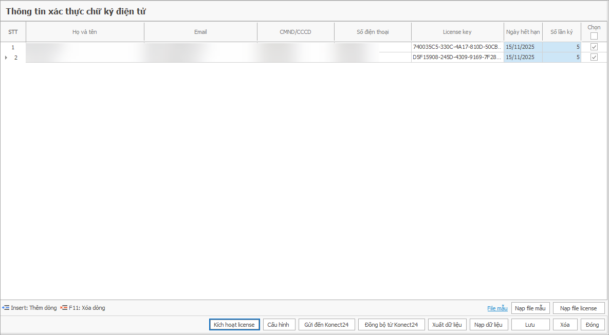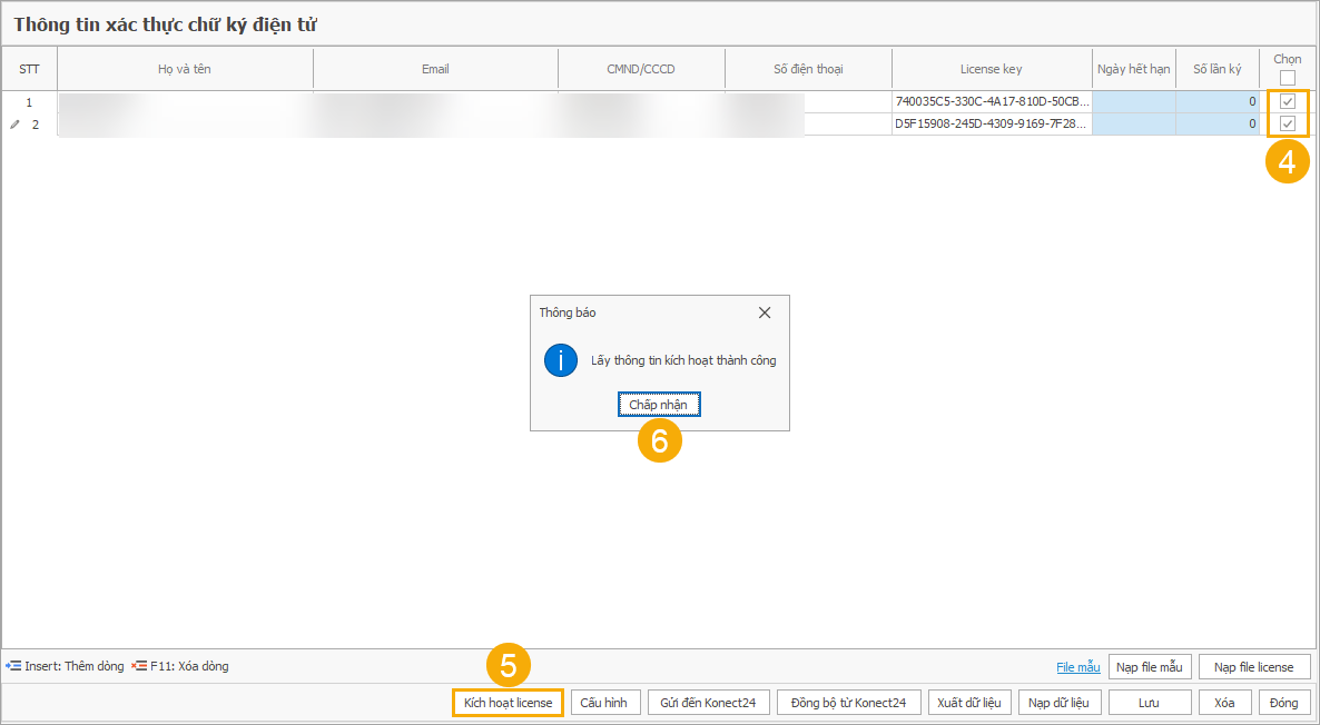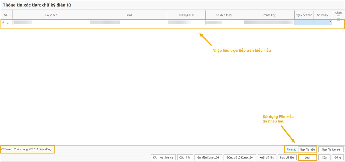 - Cách 1: Nhập trực tiếp vào phần mềm ở các trường họ và tên, email, CMND/CCCD, số điện thoại, mã kích hoạt.