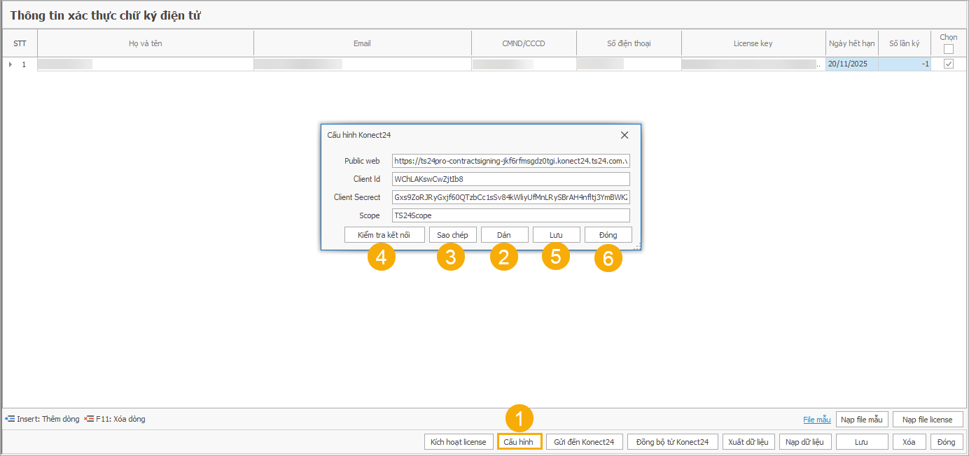 (6) Nhấn nút Đóng để đóng form Cấu hình Konect24.