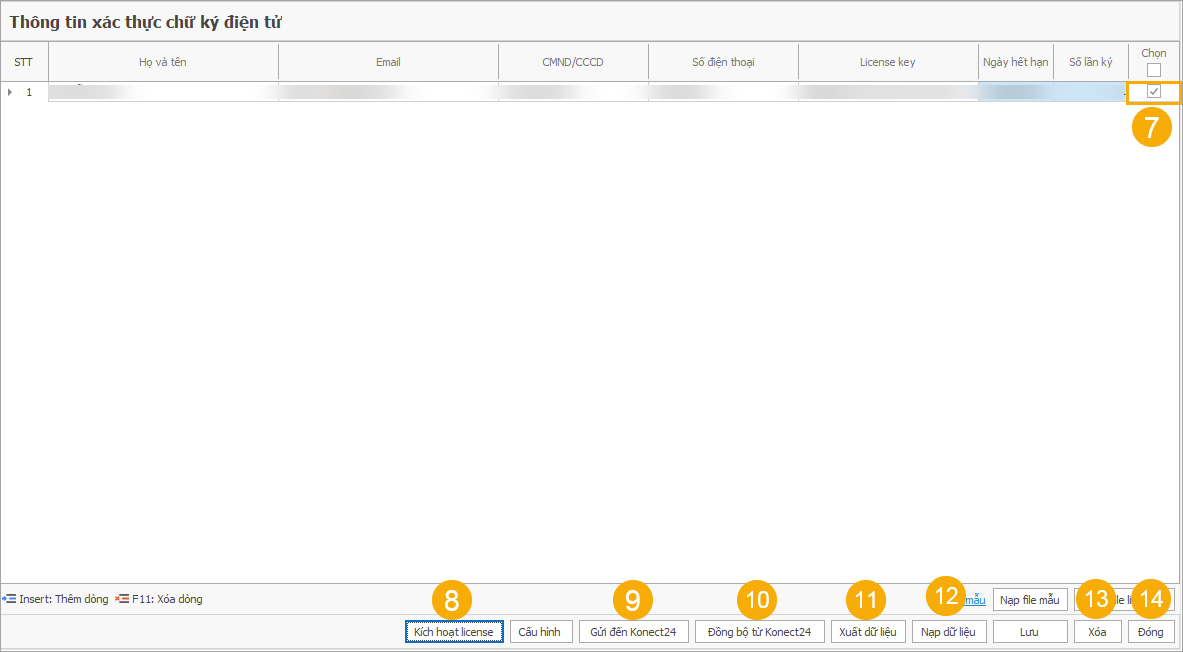 (8) Nhấn Kích hoạt license để hiển ngày hết hạn, số lần ký.