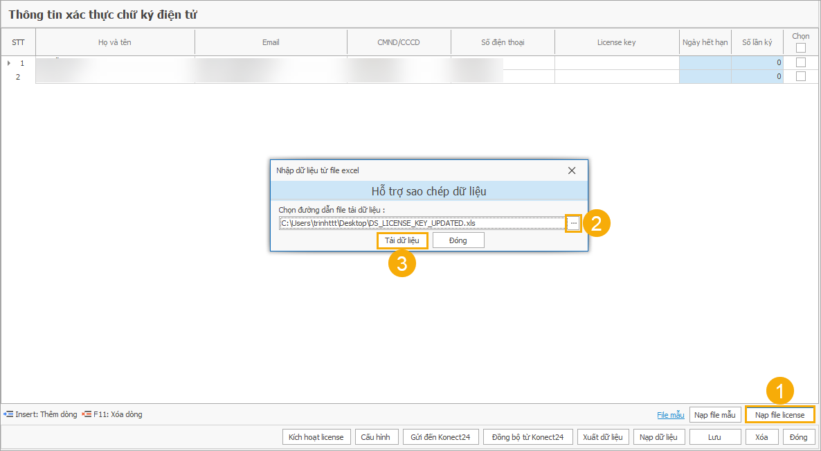 Lưu ý: File mẫu Danh sách license key sẽ được TS24 cấp cho khách hàng khi hoàn tất giao dịch.
