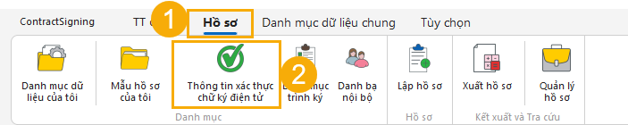 (2) Chọn Thông tin xác thực chữ ký điện tử.