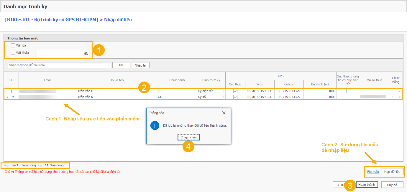 (F) Nhấn nút Hoàn thành để lưu dữ liệu đã nhập.