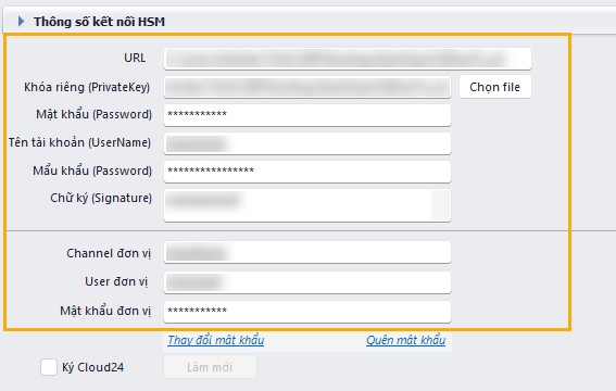 - Loại 1: Hỗ trợ cấu hình kết nối chữ ký số HSM sử dụng riêng của đơn vị.