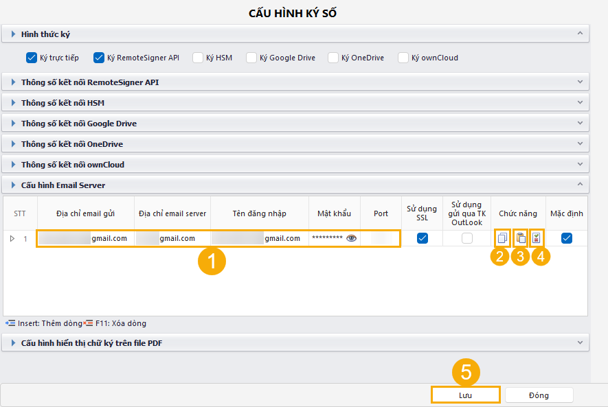 (1) Nhập đầy đủ thông tin tại form Cấu hình email Server