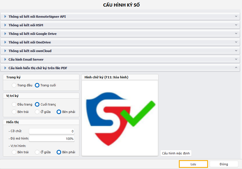 IV. Cấu hình hiển thị chữ ký trên file PDF: