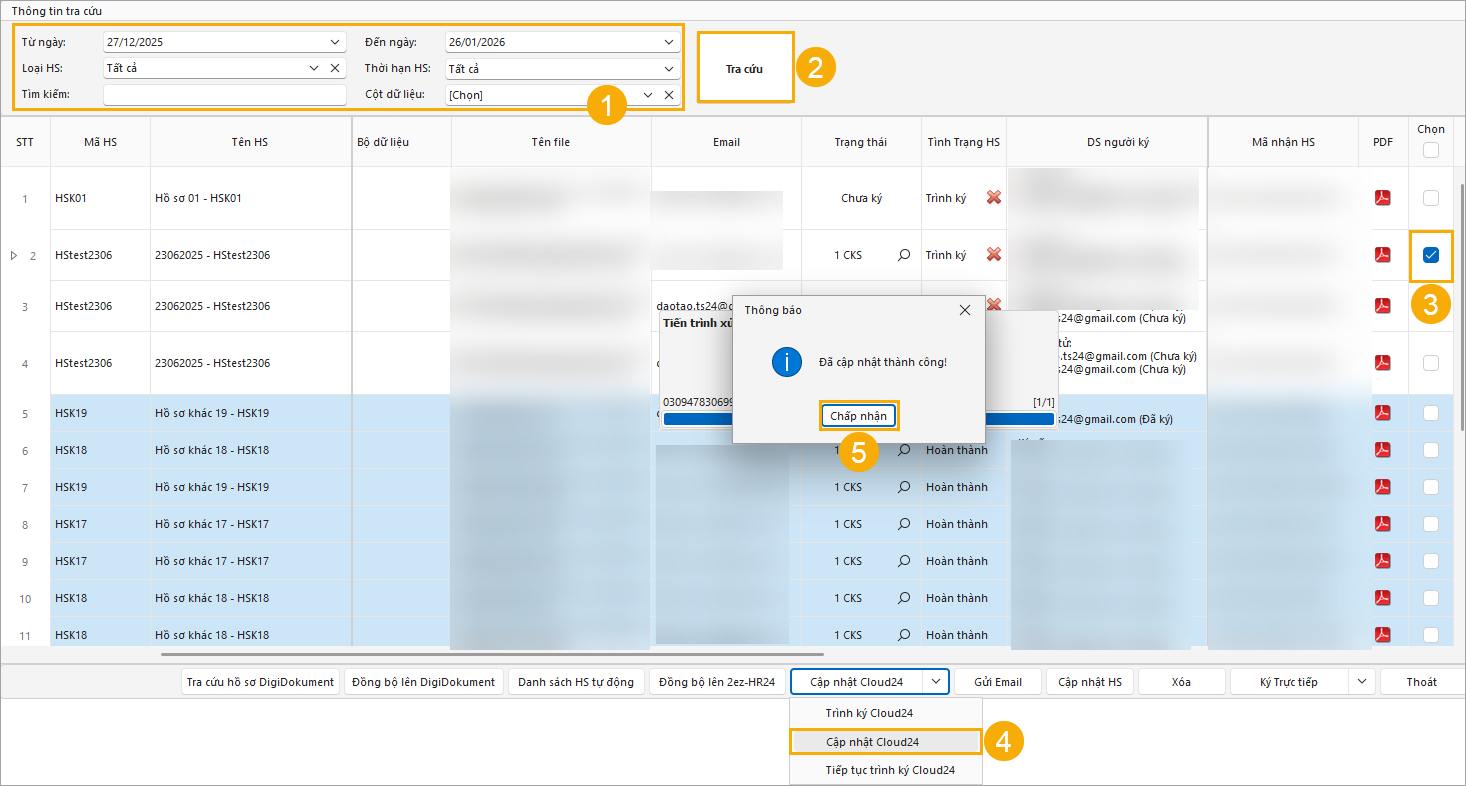 (3) Tích chọn hồ sơ cần cập nhật