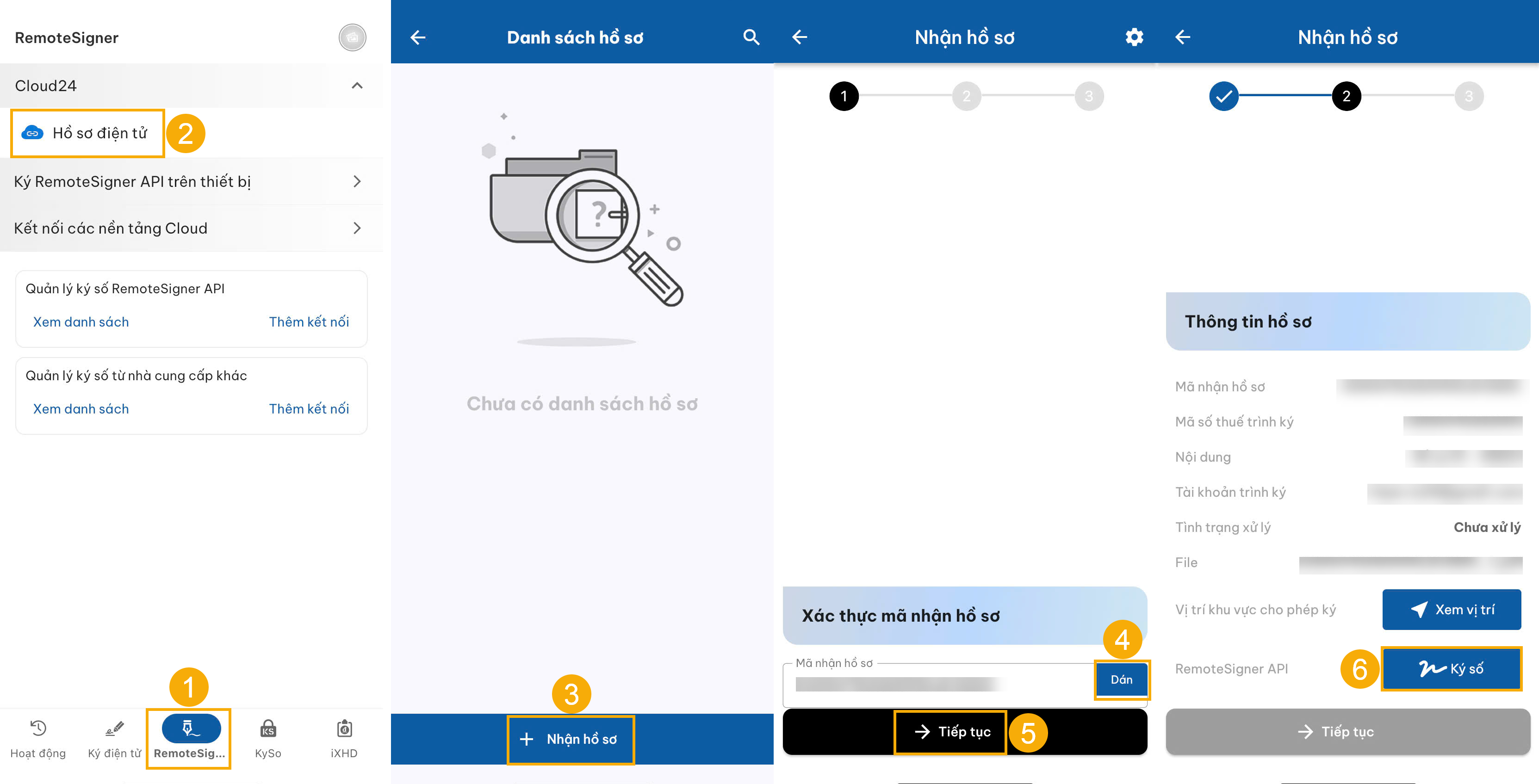 Người dùng sao chép mã hồ sơ trên và dán vào trường dữ liệu tại bước (4) Dán mã nhận hồ sơ trên ứng dụng SafetySigning.